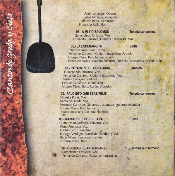 CARATULA, CANTOS DE GREDA Y CIELO DE CHILO OROSTICA